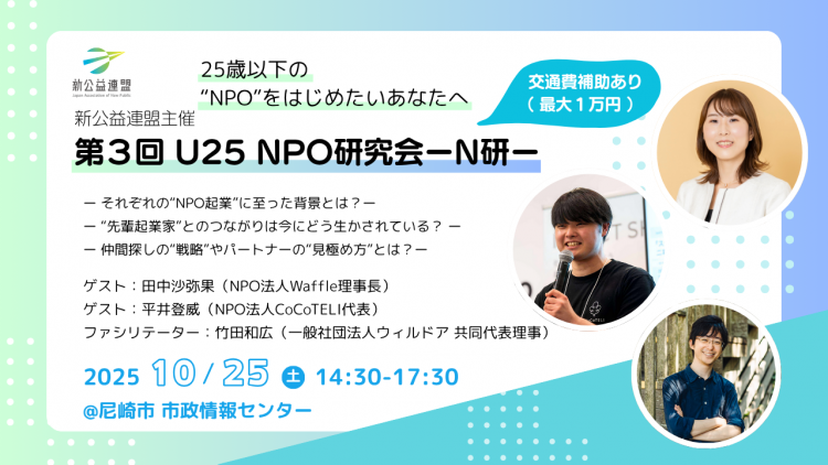 センパイNPO経営者と出会い、NPOに関心のある同世代と学びあう場『U25 NPO研究会-N研-』第3弾!N研初の“関西”開催!!
